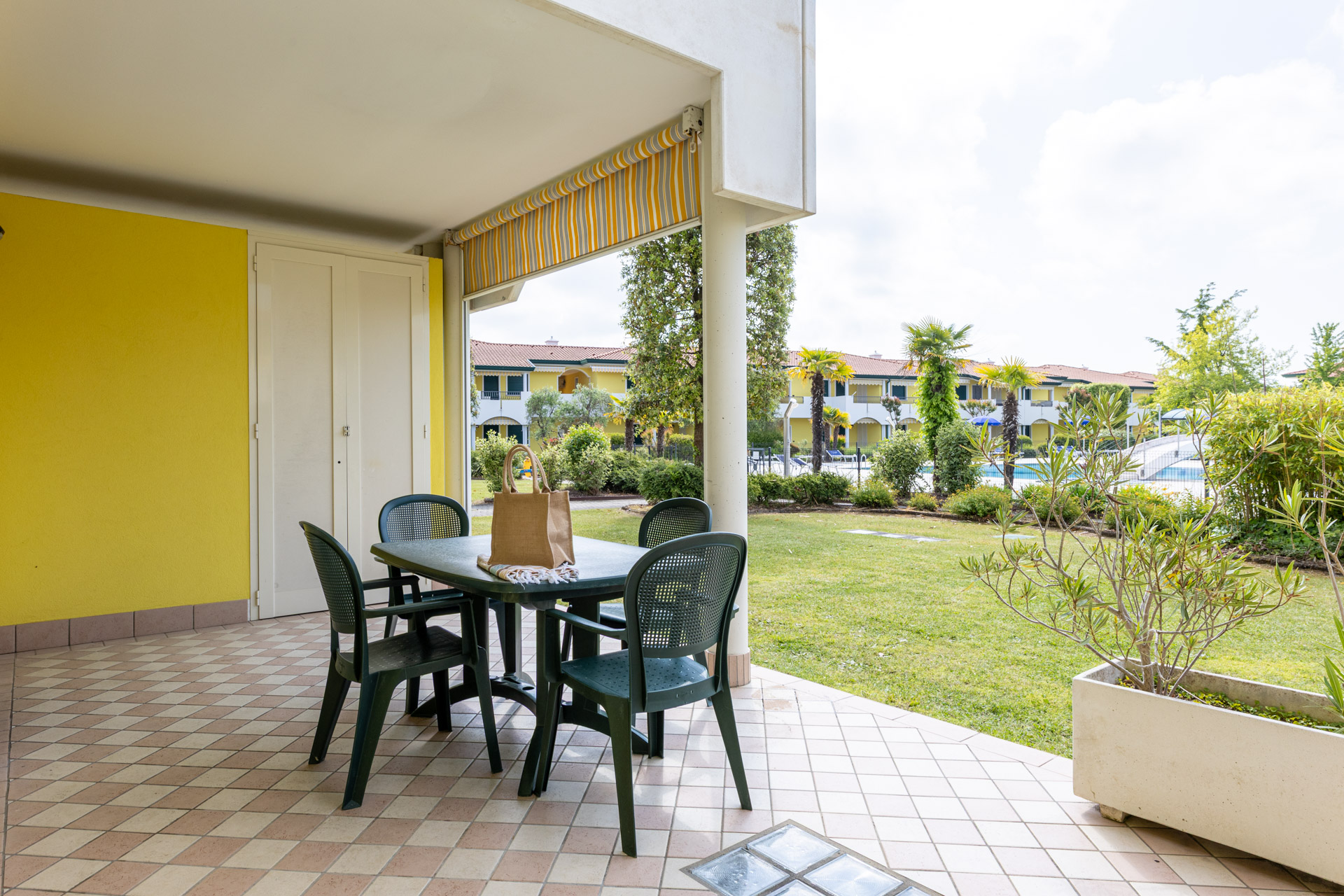 Das Wohnzimmer verfügt über eine Kochnische und eine Schlafcouch, während die beiden Schlafzimmer vielseitige Lösungen bieten: eines mit zwei Einzelbetten und einem Klappbett, das andere mit zwei Einzelbetten.