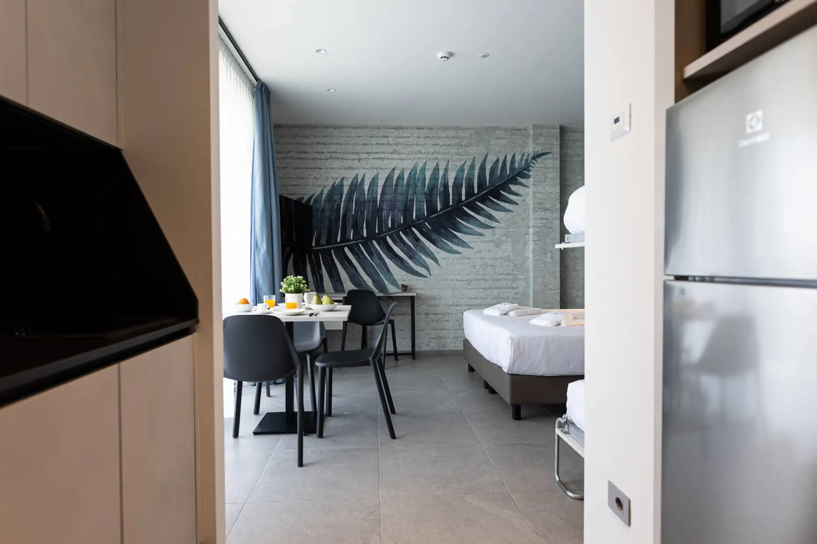 Egy kifinomult stílusú stúdió apartman, amelyet úgy terveztek, hogy a kényelmet és a funkcionalitást harmonikusan ötvözze egy meghitt és barátságos környezetben.