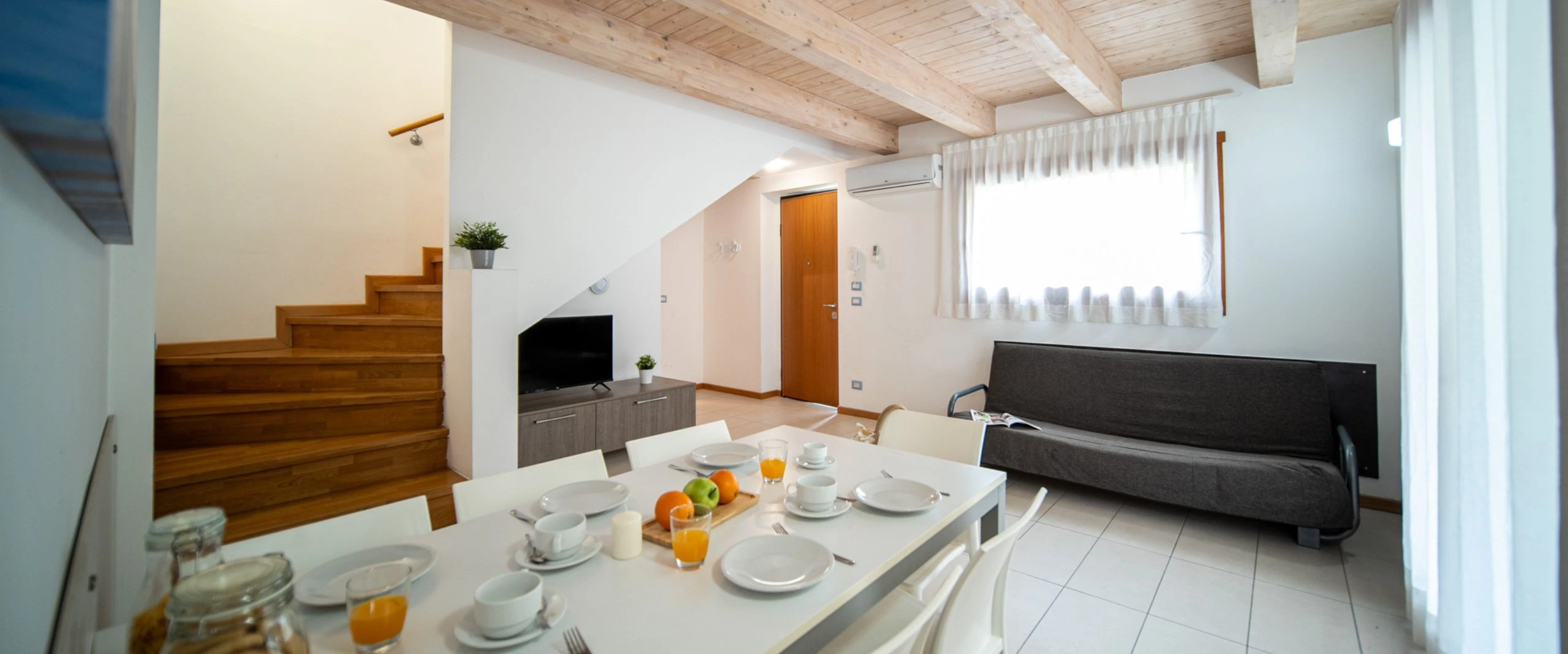 Perfetti per famiglie numerose o gruppi di amici, i quadrilocali su due piani offrono spazi ampi e ben organizzati, garantendo privacy e comfort per fino a 8 persone.